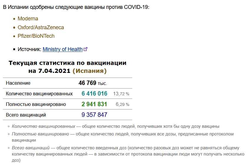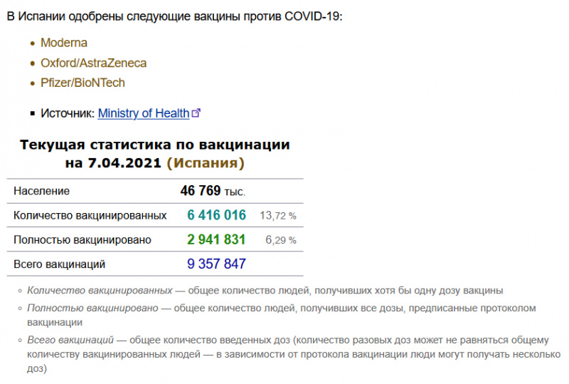 В Испании, как выяснилось, все не так уж и плохо - почти 14% первичная прививка и %6,29 вторичная.