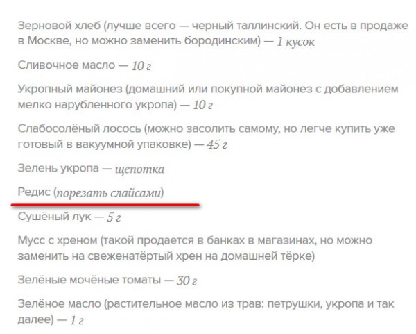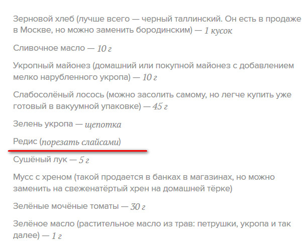 В шведском языке смёрребрёд - это просто бутерброд. Любой. Но бутерброд - это же некузяво, поэтому пусть будет смёрребрёд. Хорошо хоть не voileipä. И шеф-повар не будет шеф-поваром, если он не найдет, как еще поиздеваться над великим и могучим. Редис, дети, надо не писом! Редис, дети, надо ПОРЕЗАТЬ СЛАЙСАМИ! (Кот Бублик на этом месте взвыл от восторга и просыпался с дивана мелкими слайсами, спайсами и хардвер-девайсами.)