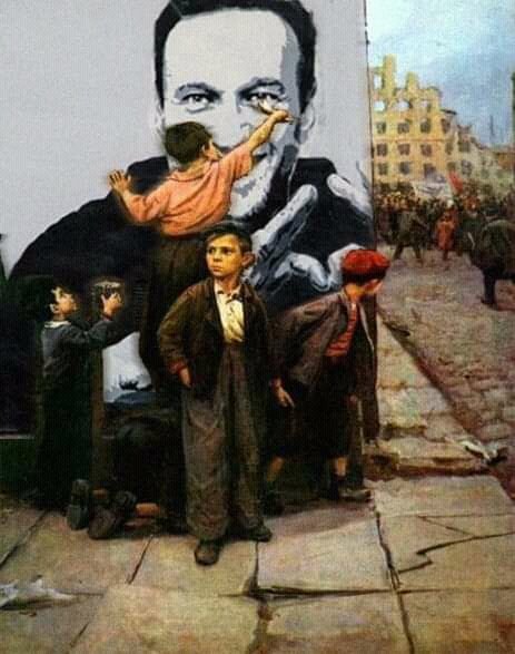 Художникам на заметку. Такие портреты надо рисовать красной краской. Этот цвет один из самых тяжело удаляемых. Иногда надписи красным, закрашенные черным, через какоето время проявляются.