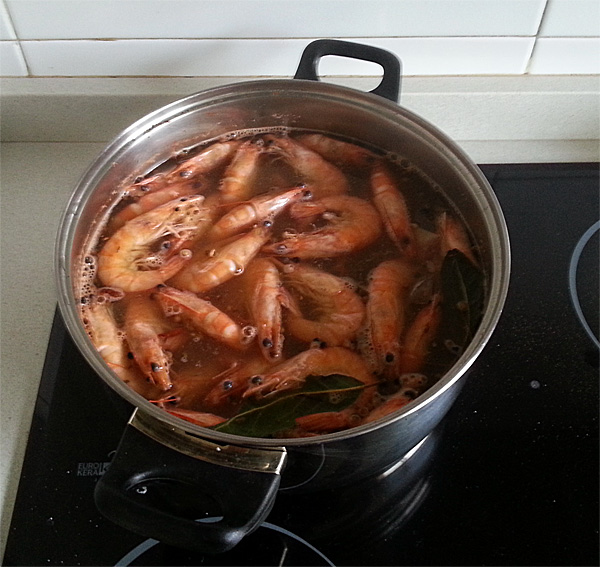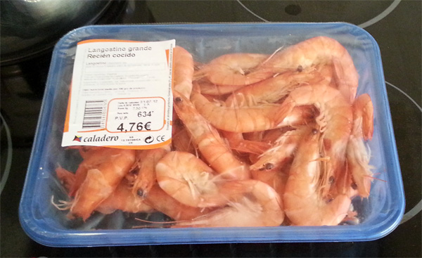 В Испании продается куча видов самых разнообразных креветок. Свежие сырые местные, свежезамороженные неместные - аргентинские и так далее. Ну и также в больших количествах продаются местные свежеотваренные - они пользуются самой большой популярностью. Эти могут продаваться на вес, а могут расфасовываться в упаковки где-то по 630-650 граммов.