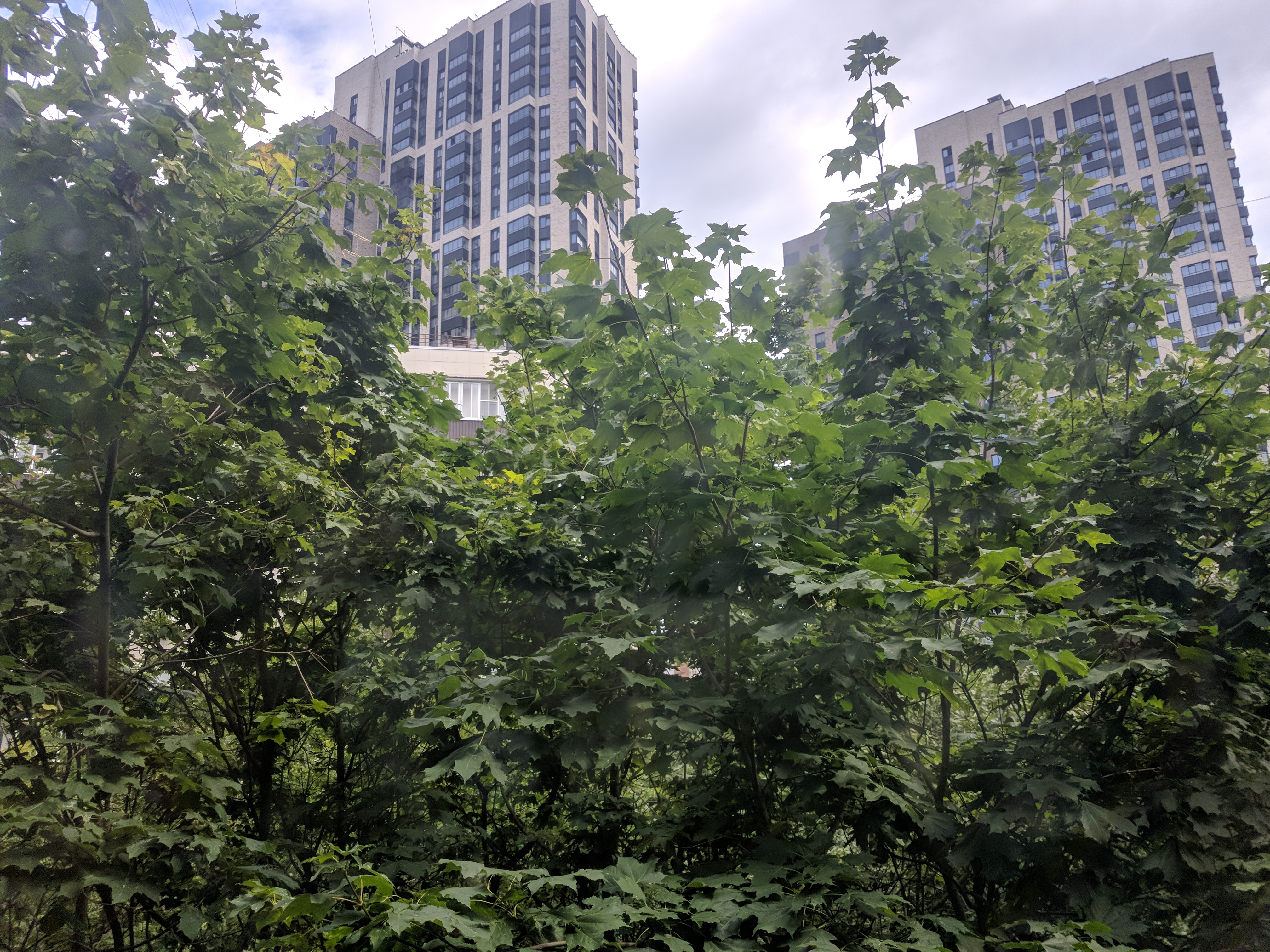 Уже публиковал к предыдущей записи, это если влево посмотреть. Вправо - неинтересно, сплошная зелень. И не скажешь, что до сити - 7 минут на машине.