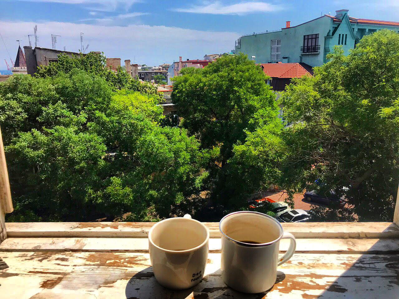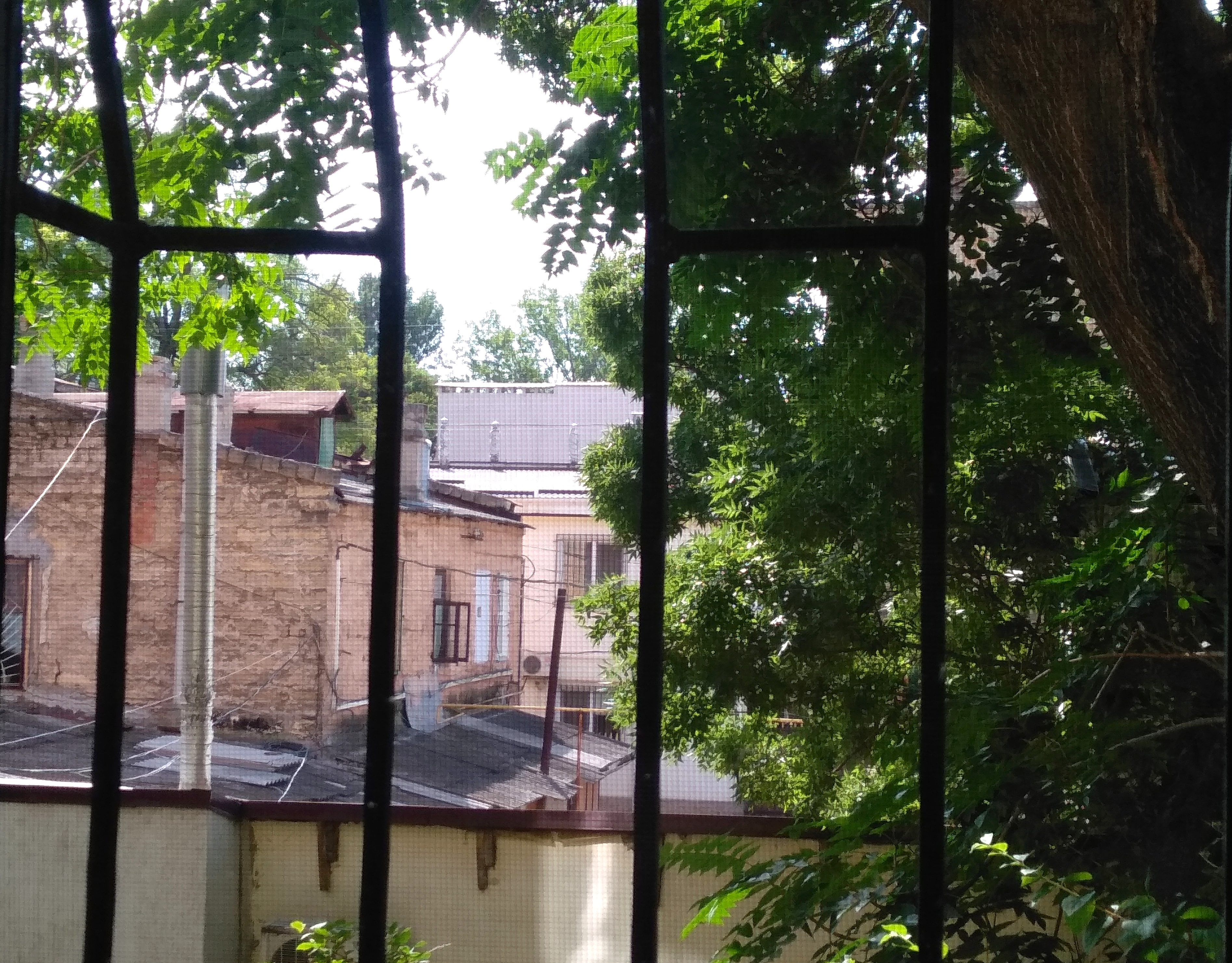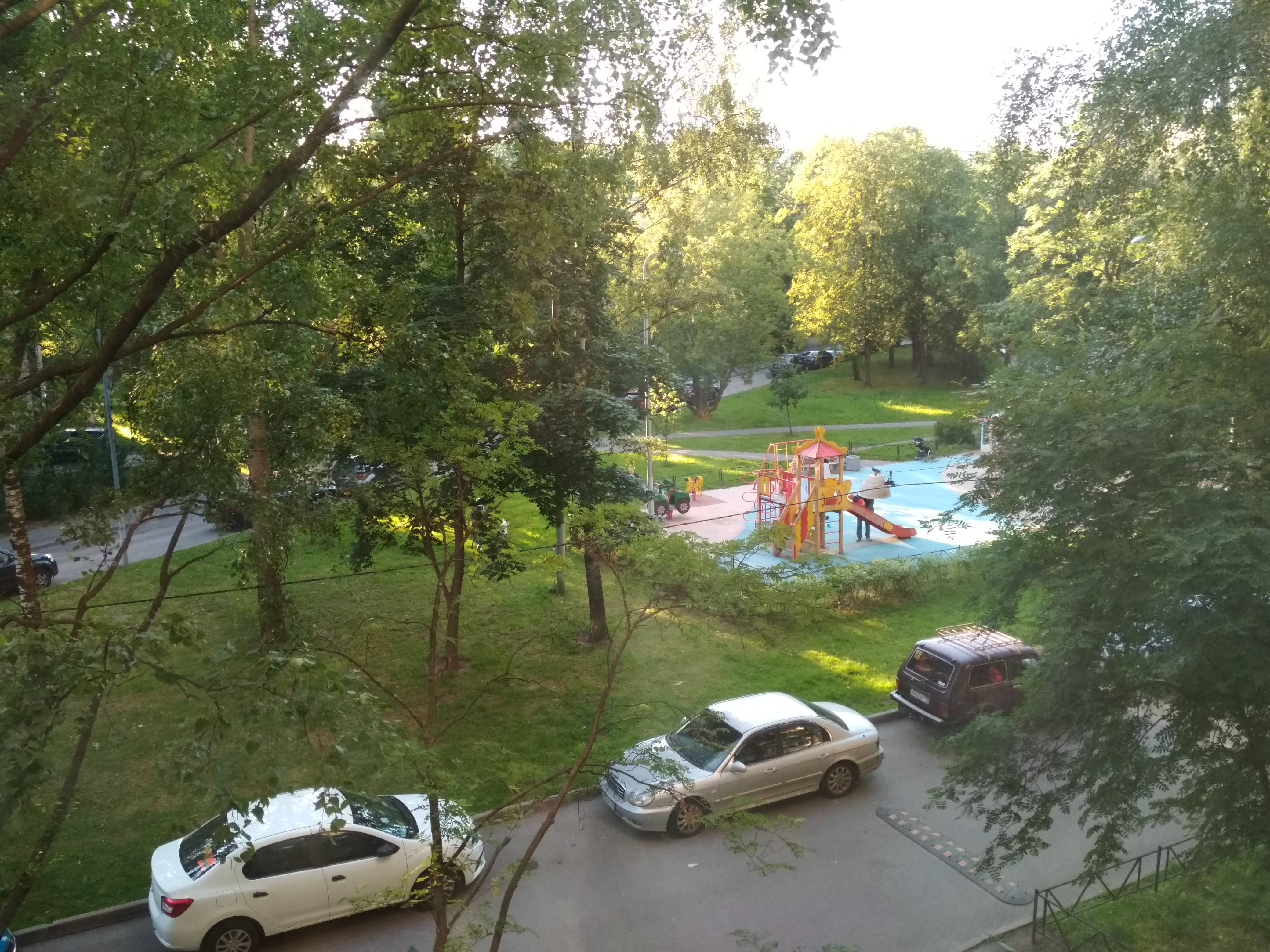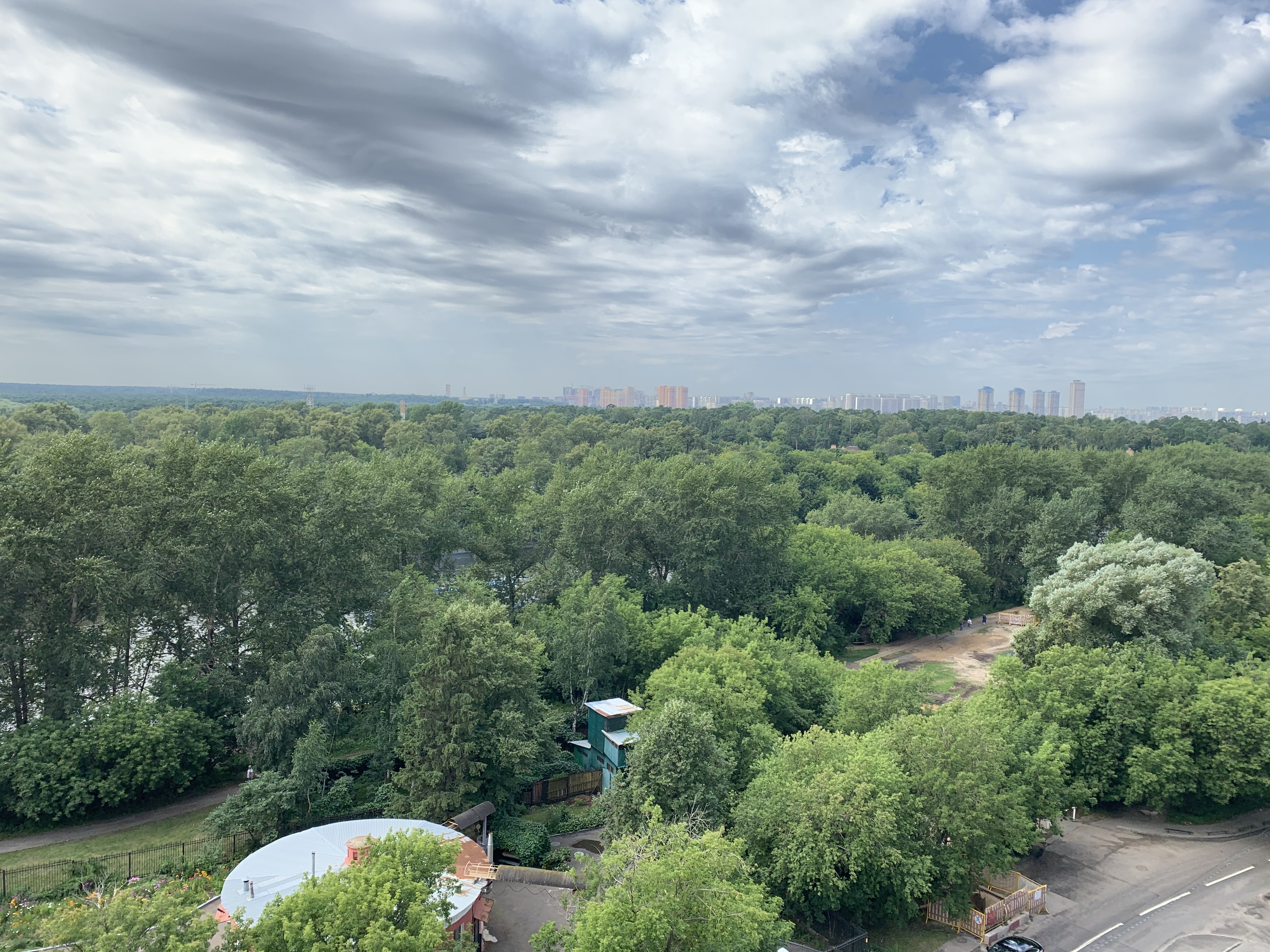 Почти из окна, точнее внизу выход. Раньше было зелёным с рощей до пожаров конца 2016