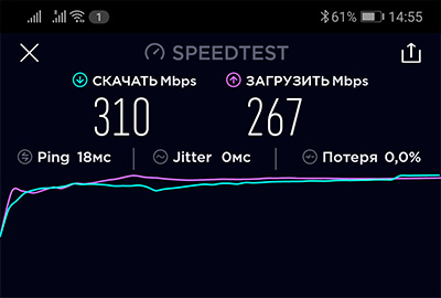 скорость Интернета - максимальная, фактически 300 на 300 мегабит.