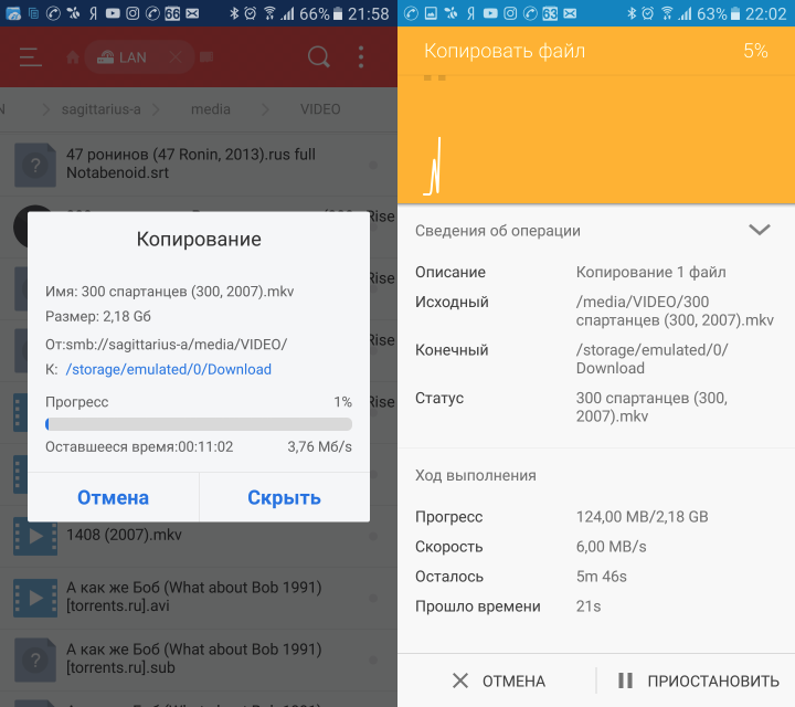 Проверил три менеджера, которые оказались у меня в телефоне, один из них скорость не показывал, а два показывали. И скорость оказалась разной, отличающейся в 1.5-2 раза. Разница стабильна, пробовал несколько раз в разном порядке, чтобы исключить возможное кеширование на SMB сервере.