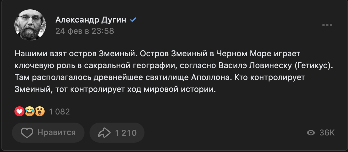 Остров змениный на самом деле действительно важная стратегическая цель и для ВСУ и для российской армии. Если РФ сможет разместить там ПВО дальнего радиуса действия то сможет контролировать небо не только над Одессой, но и над большой частью Румынии и Молдовы.
