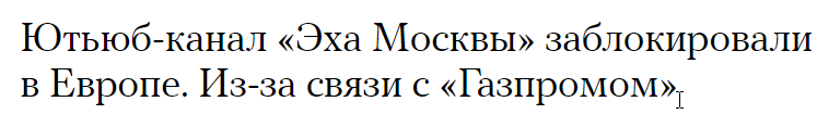 Скачивал в эти дни кучу видео с Ютюба. Многие не успел посмотреть, в т.ч. вчерашний эфир с Шульман. Как я рад, что скачал, чувствовал - срочно надо! Видна была плашка, что Эхо полностью или частично финансируется (организациями, связанными с правительством) РФ . Сейчас досмотрю сегодняшнее (линк тут, по крайней мере сегодня был) видео Фельгенгауэров, и посмотрю тот "прощальный" эфир. Очень надеюсь, что мы её и других хороших людей ещё услышим.
