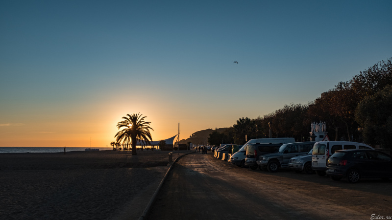 Не являюсь профессиональным фотографом, но как "читатель" скажу, что провалы в тенях слишком заметные, поэтому обработал на свой вкус - а вообще на месте фотографа сдвинулся бы левее от точки съемки метров на 10-15, чтобы автомобили в кадр не попали вообще, а только море, солнце, песок и пальмы (и крыши павильонов, если от них никак не избавиться). Вот это был бы снимок!