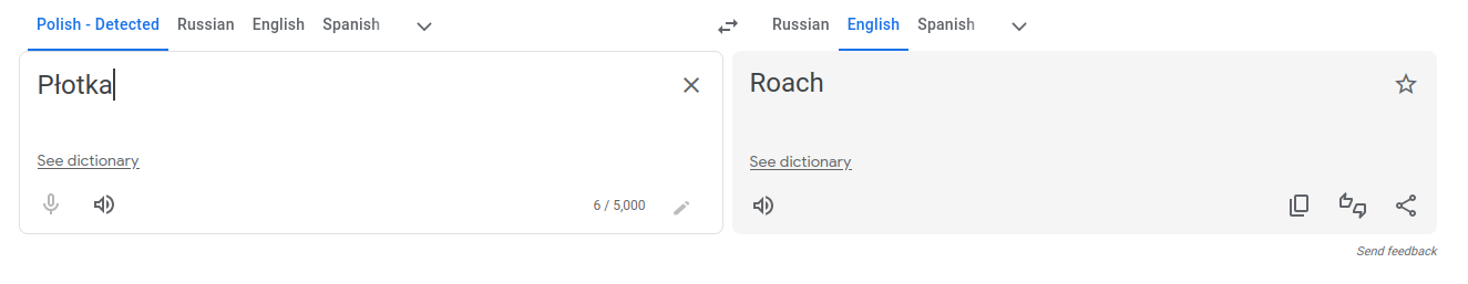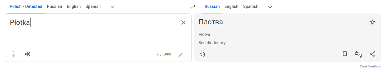 Гуглтранслейт уже Płotka как "Плотва" переводит -- научился на материале. 😄