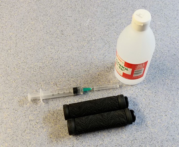 Перед посадкой новых грипсов порекомендовали смочить руль спиртом. Мол, так проще сядут, а спирт быстро испарится и грипсы будут хорошо держаться. Так и сделал.