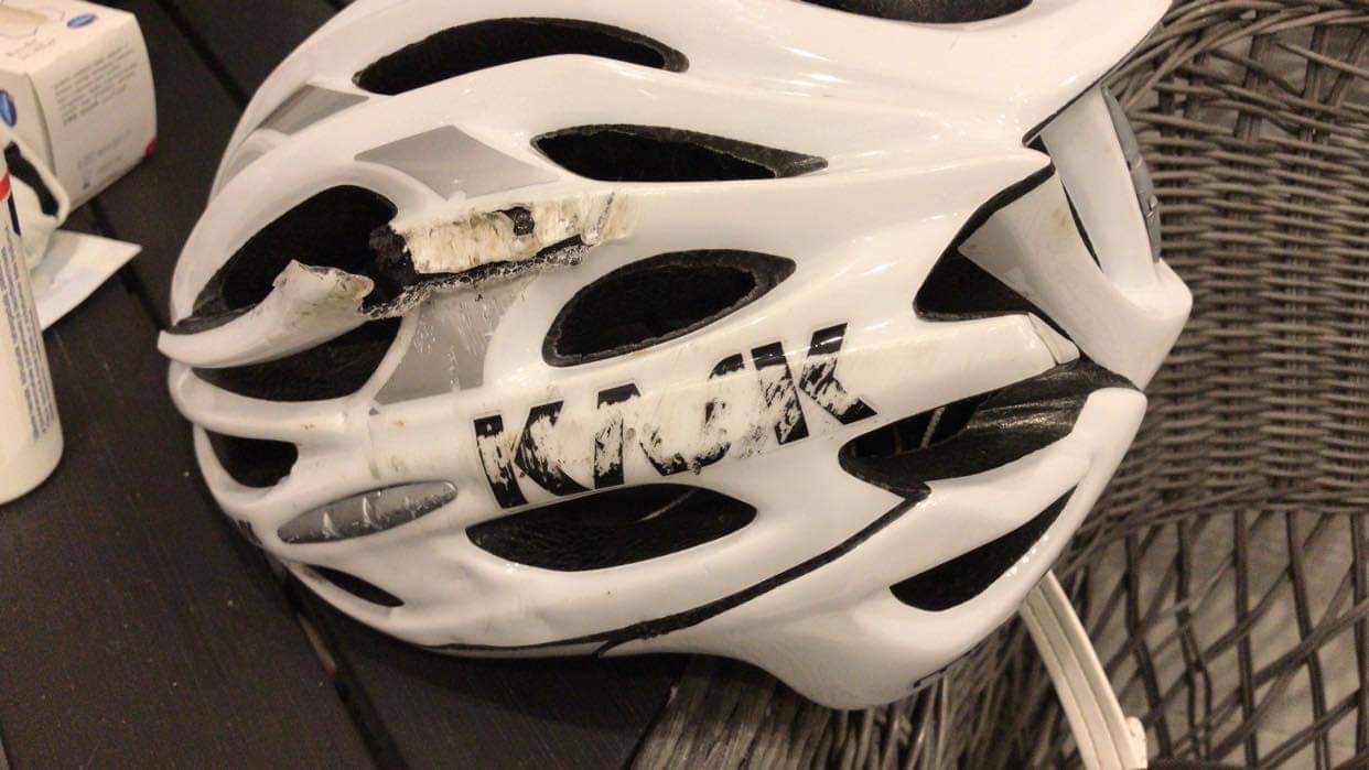 Может, вы уже знаете, но на всякий случай - шлем теперь нужен новый. Они сделаны так, чтобы погашать силу удара, переводя ее в материал шлема, и в результате там образуются микротрещины. Сопротивление к удару в результате падает, в следующий раз он не спасет. Хотя, скорее всего, выглядит также. "Усталость материала" называется, если я правильно помню.