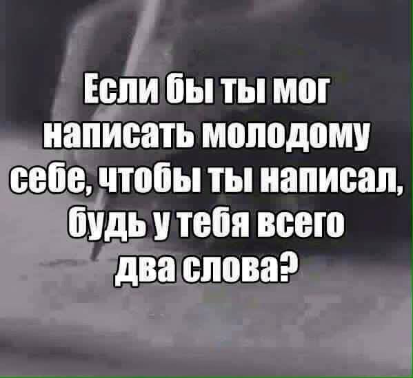 Рассказ такой есть, "День Красного Письма". Там каждый при выпуске из школы получает письмо из будущего от себя 50-летнего, в котором разрешено писать только что-нибудь очень общее (типа "обязательно следи за здоровьем", "не нагружай печень"), либо что-то конкретное ("24 сентября 2035 после пьянки не садись за руль, возьми такси"). Но в два слова уложиться - это, конечно, жесть.