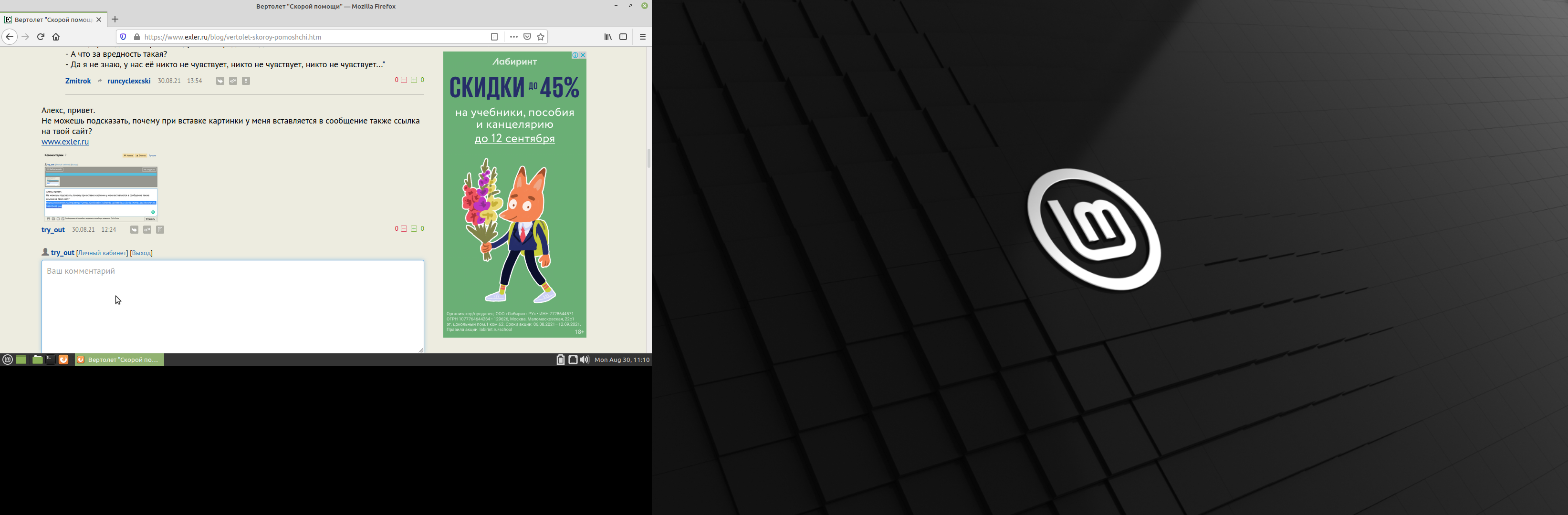 Но мне сдаётся, это сайт Экслера так реагирует на Linux. Я на сотне форумов общаюсь, никаких глюков нет.