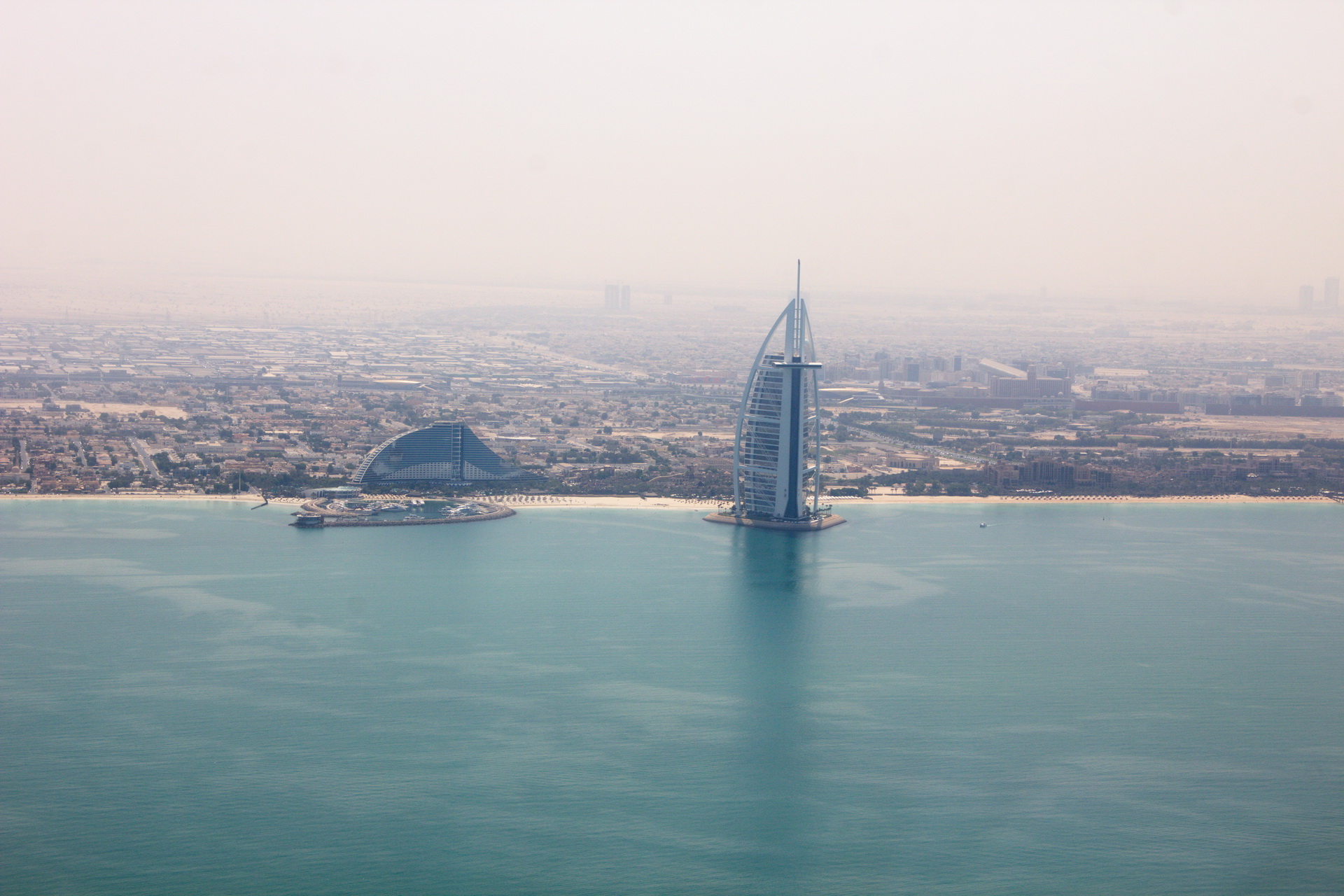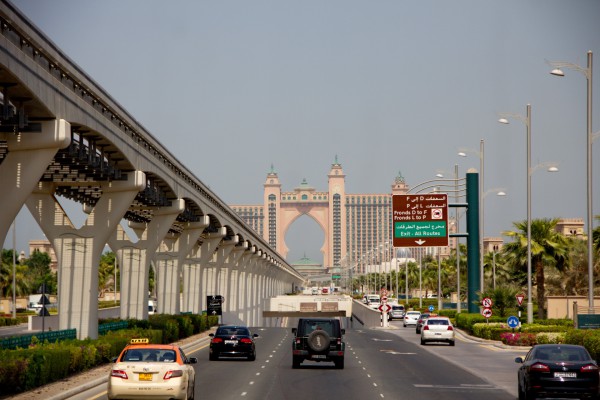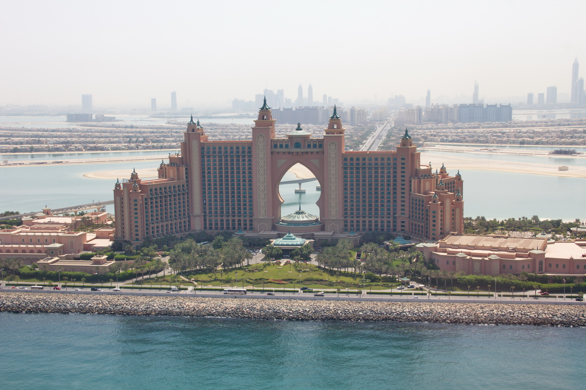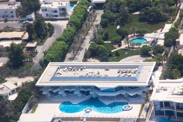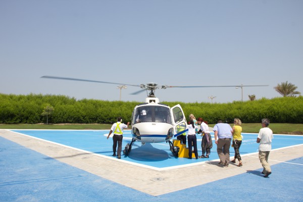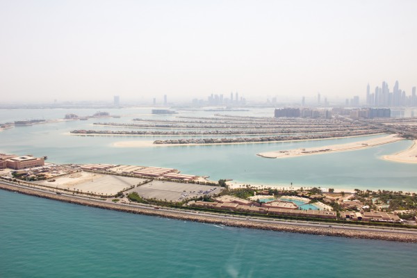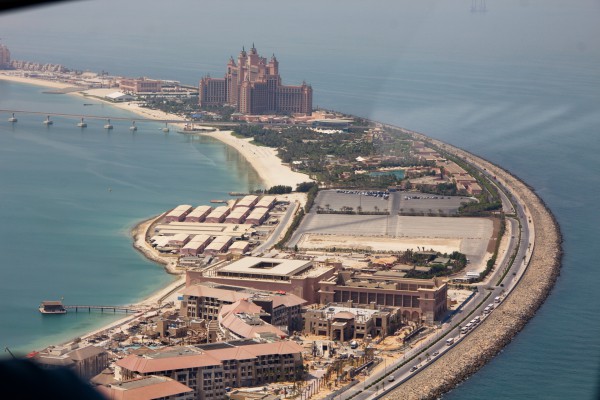 Вертолетная прогулка делается с площадки у отеля "Атлантис", расположенного на знаменитом искусственном острове "Пальма Джумейра" рядом с Дубаем. Когда шейх Мохаммед, правитель Дубая, объявил, что он построит искусственный остров с виллами, отелями и апартаментами, в течение 72 часов будущие особняки стоимостью от миллиона долларов были распроданы. Вложившие деньги не прогадали - уже построенные здания они потом продали в пять раз дороже. Недвижимость острова первоначально раскупалась как горячие пирожки, тем более что иностранцам там было разрешено покупать дома и квартиры. Впрочем, в поледнее время спрос упал почти до нуля, соответственно упали и цены.