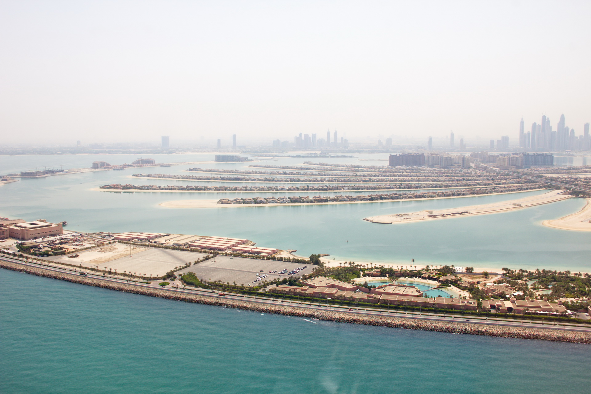 Кстати, первая картинка - не Пальма Джумейра, а Пальма Джебель Али. Это недостроенный остров в полтора раза больше Пальмы Джумейра. Разница между ними в том, что у Джебель Али между волнорезом и "ветвями" по проекту предусмотрены острова в виде арабской вязи (кажется, поэма правителя Дубая). На фото с подписью "Остров сверху" видно, что этих островов нет. А фотки классные, да 😄