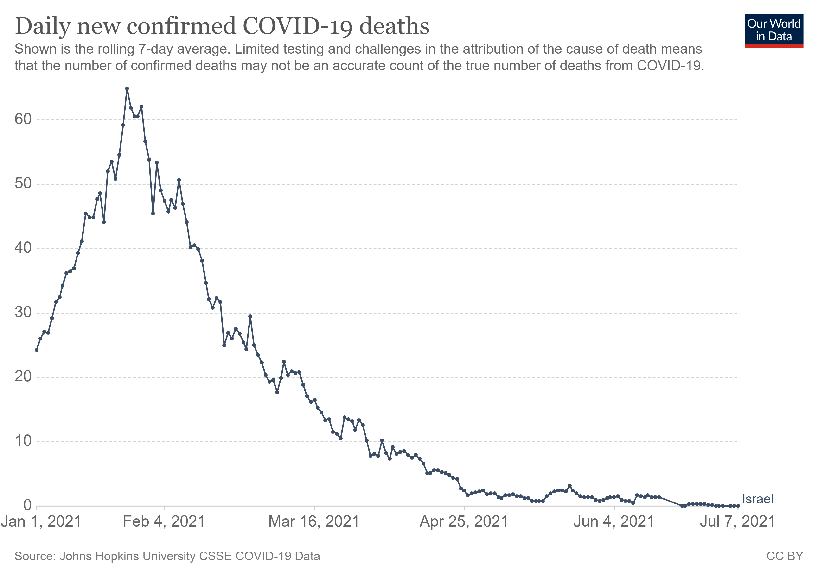 Причина такого лёгкого течения в Испании прививки?Скажу за Израиль. У нас вакцинируют пока только Файзером (Модерной вроде вакцинировали только заключенных и часть военнослужащих, но это не точно насчет Модерны, не хочу соврать). Так вот эффективность файзеровской вакцины против тяжелых заболеваний от варианта Дельта на уровне 91-93%, эффективность против заражения Дельтой гораздо ниже, 60 с чем-то процентов. Отсюда рост количества инфицировннных без роста тяжелобольных. Хотя, вот сегодня сообщили, что умер какой-то дедок привитый двумя дозами. Однако, грань между "умер от коронавируса" и "умер с коронавирусом" - тонкая.