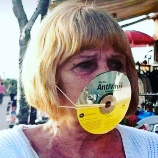 Когда объявили карантин, никаких масок в аптеках уже не было. Да и аптеки стали работать в режиме "через дверной глазок", так что поначалу туда ходить и смысла не было. Строительные респираторы также все расхватали. В первые недели народ обычно закрывал нижнюю часть лица шейным платком или банданой. Но это делали далеко не все: первые несколько недель карантина в магазинах было очень много людей без масок, хотя тогда как раз была самая настоящая паника. (Да еще и дожди, вдобавок ко всему, лили всю первую неделю, а у местных от подобного начинается конкретный депрессняк). Ну или что-то другое на лицо нацепляли, причем доходило до откровенного цирка - вот реальная фотография, не постановка.