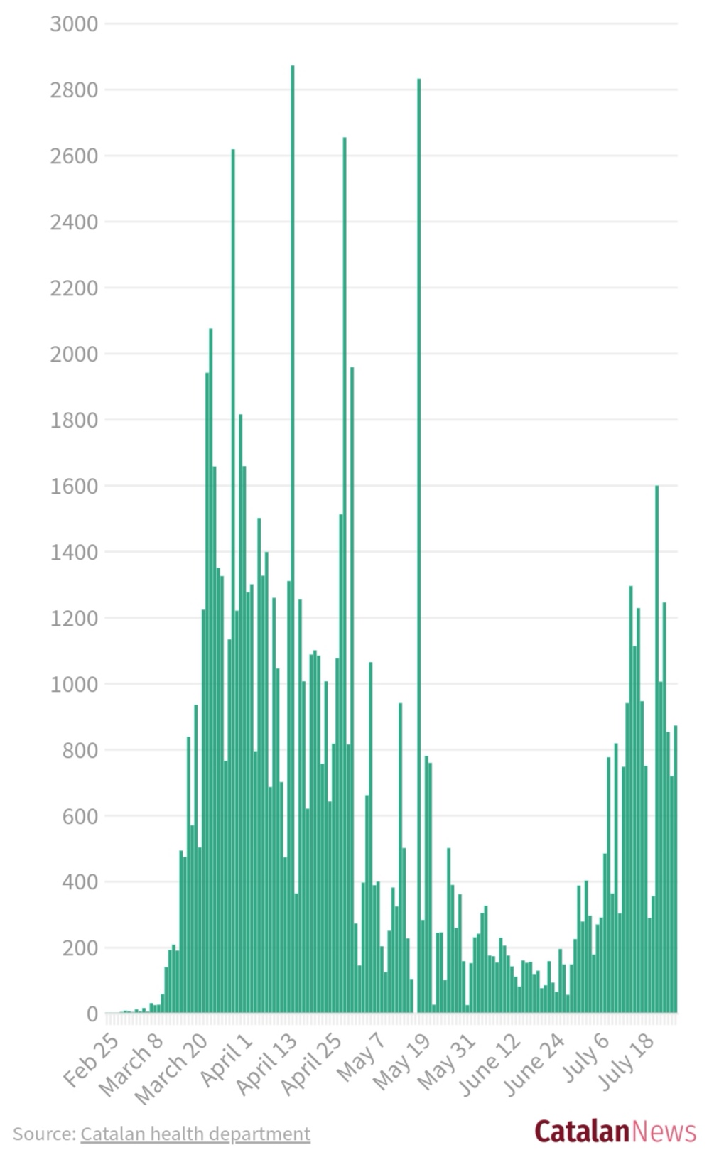 В нашей Каталонии вообще жуть - по 100-150 случаев в день на 7,6 миллионов населения.