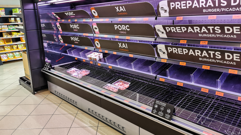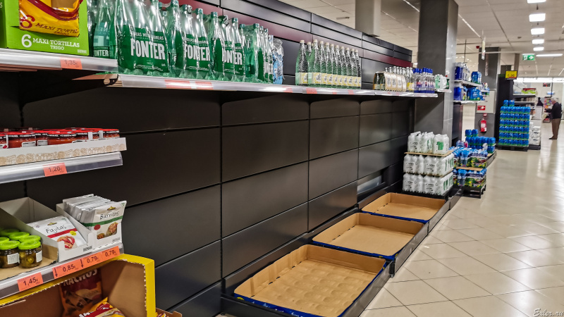 Приехал в "Меркадону". Смотрю, что-то народу маловато, пару дней назад было заметно больше, все сгребали. Но прошелся по магазину - теперь понятно, почему народу мало. Потому что все выгребли.