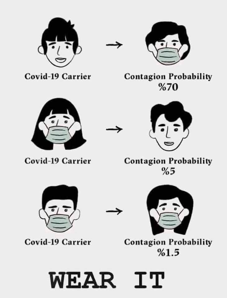3) Если в тряпичной маске будешь только ты, то это хуже всего. Именно поэтому в таких ситуациях надо носить не маски, а респираторы с классом защиты. Но, даже если ты носишь простую тряпичную маску, она может дать несколько процентов защиты -например, в случайно возникшей ситуации, когда большинство вирусных частиц попало в макрокапли, которые частично задерживаются маской. Тем самым ты немного, но снижаешь количество вирусных частиц, попадающих в организм, и, может быть, этого окажется достаточно, чтобы твой иммунитет справился.