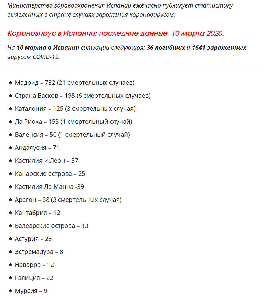Четыре случая заболевания коронавирусом в Камбрильсе и Салоу (уж Салоу, где Порт-Авентура, россияне отлично знают). Пока немного, но динамика грустная - в Испании уже 1690 случаев. Я, кстати, за статистикой слежу здесь (ссылка на Испанию, но и другие страны там также есть).