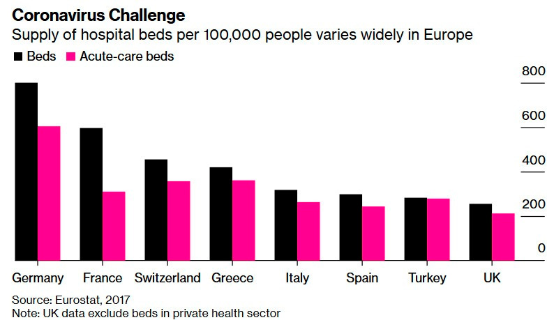 P.S. Инфографика по поводу обеспеченности больничными койками в разных европейских странах на 100 тысяч человек. Интересно, есть ли по России такая статистика?
