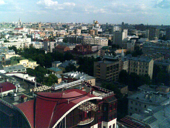Шикарный вид на Москву из "Смоленского пассажа". Только не из офиса SUP'а, а из офиса Google - он сидит в здании пассажа напротив на 15 этаже.