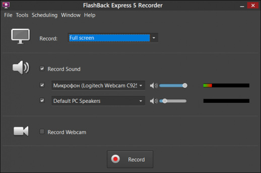 Нажимаете Record - через три секунды запись пошла. Панельку, разумеется, можно спрятать.