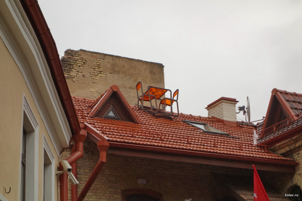 Ну и совершенно типовое для данного района зрелище - стол со стульями на крыше.