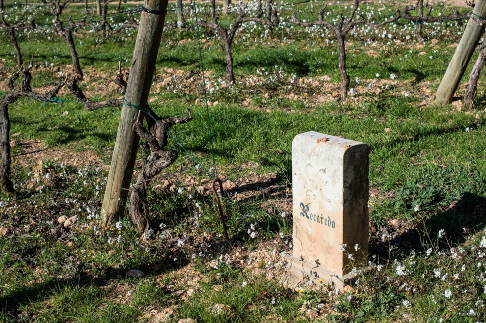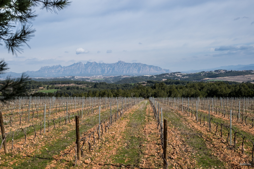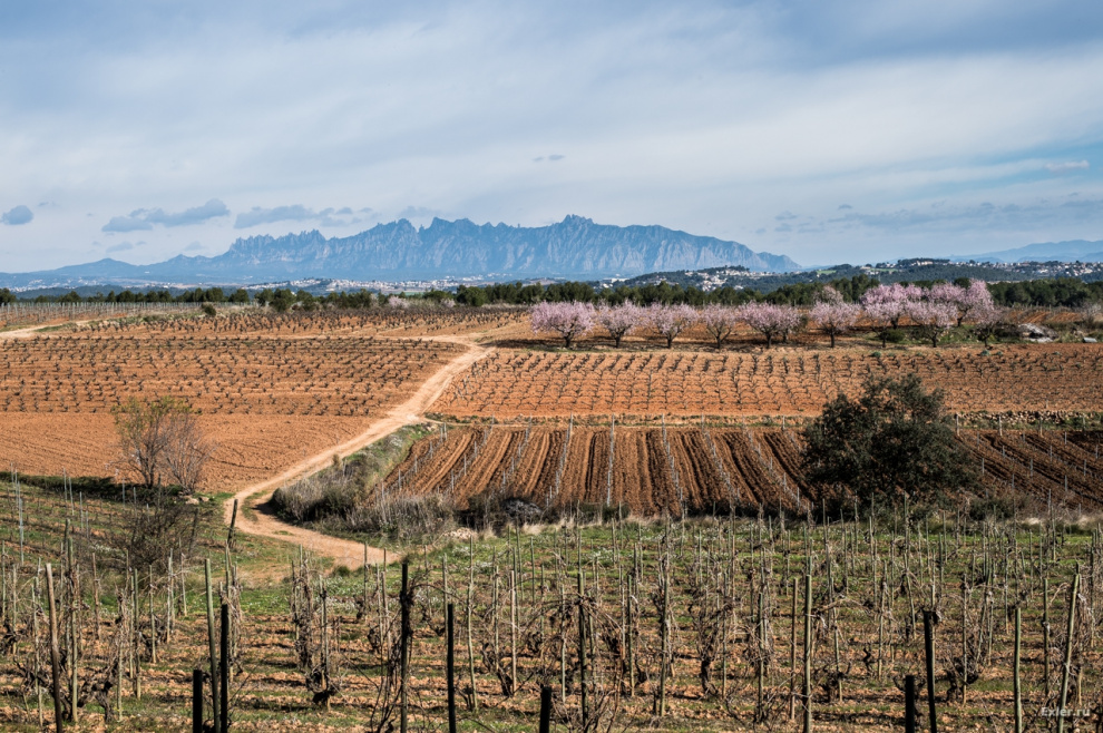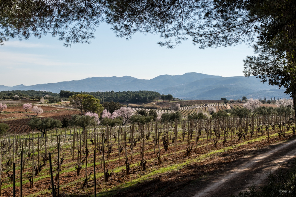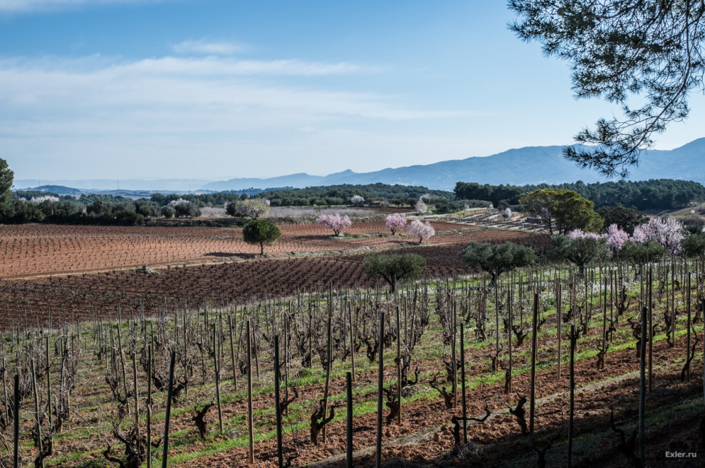 Еще один их виноградник с шикарным видом на цветующий миндаль и легендарную гору Монсеррат. Это старый виноградник, из винограда которого делают каву с выдержкой до 140 месяцев на осадке.