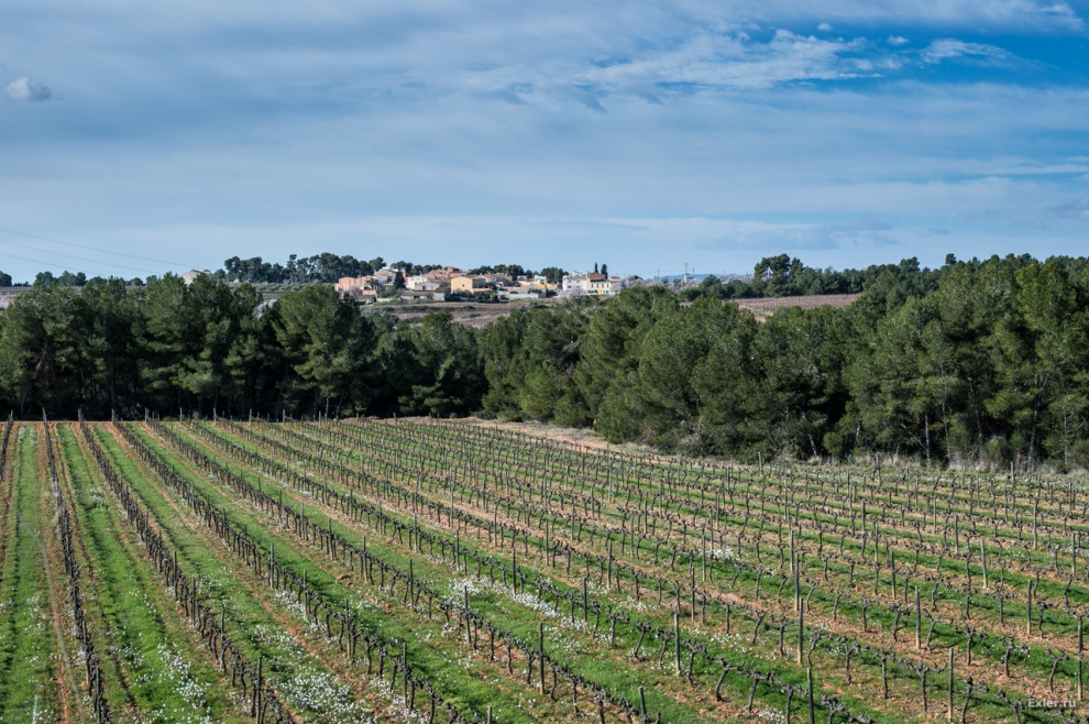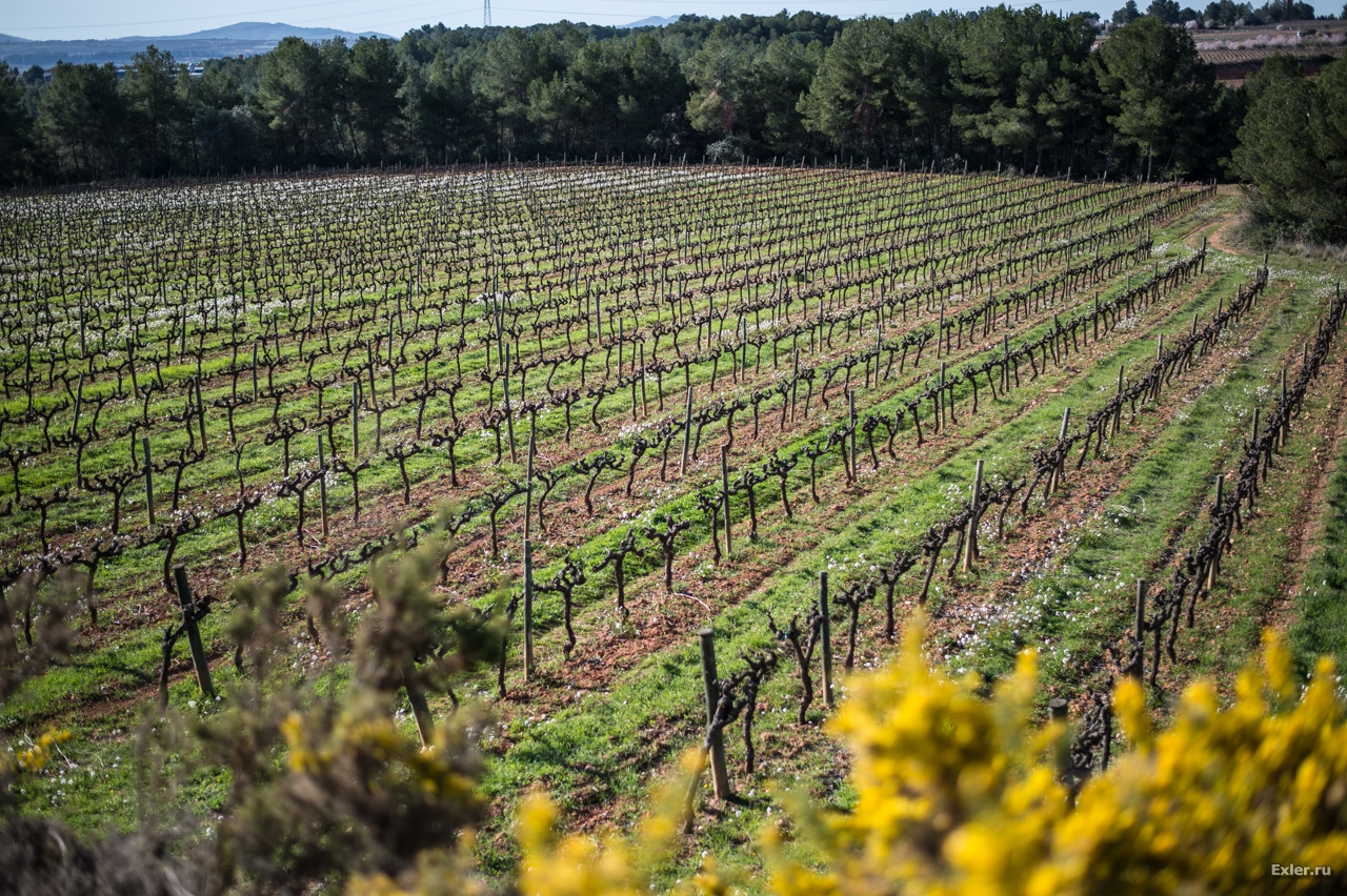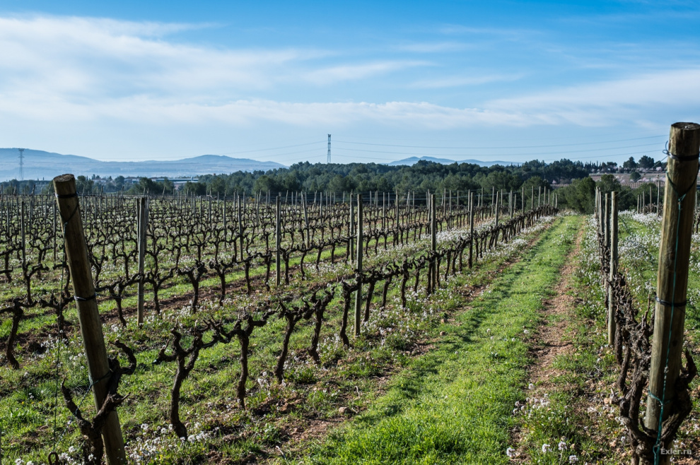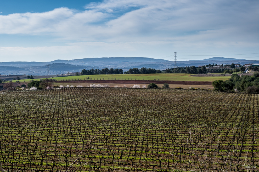 Еще один их виноградник с шикарным видом на цветующий миндаль и легендарную гору Монсеррат. Это старый виноградник, из винограда которого делают каву с выдержкой до 140 месяцев на осадке.