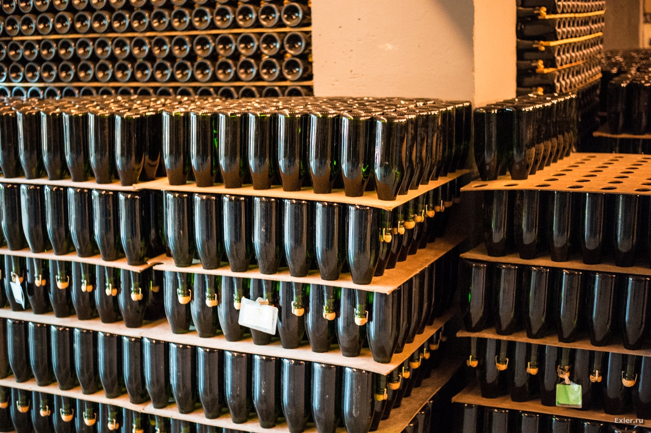 Вторичная ферментация проводится строго в бутылках. (И вот тут они добавляют дрожжи других производителей, хотя собираются через некоторое время перейти исключительно на собственные.)