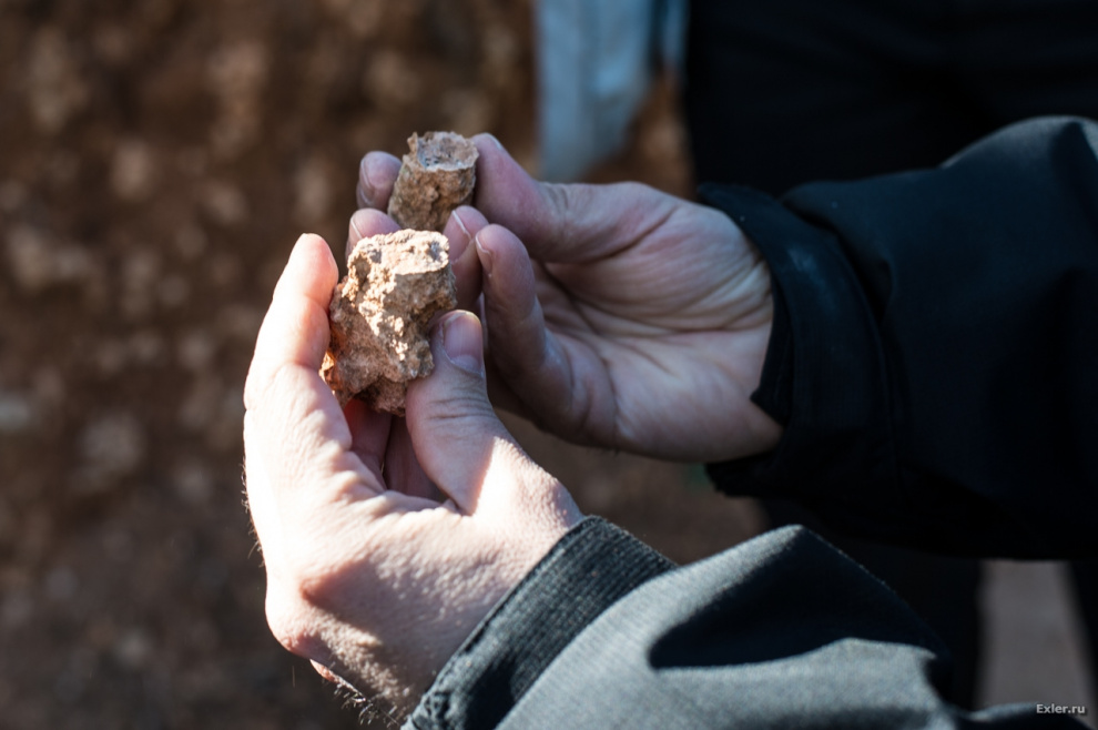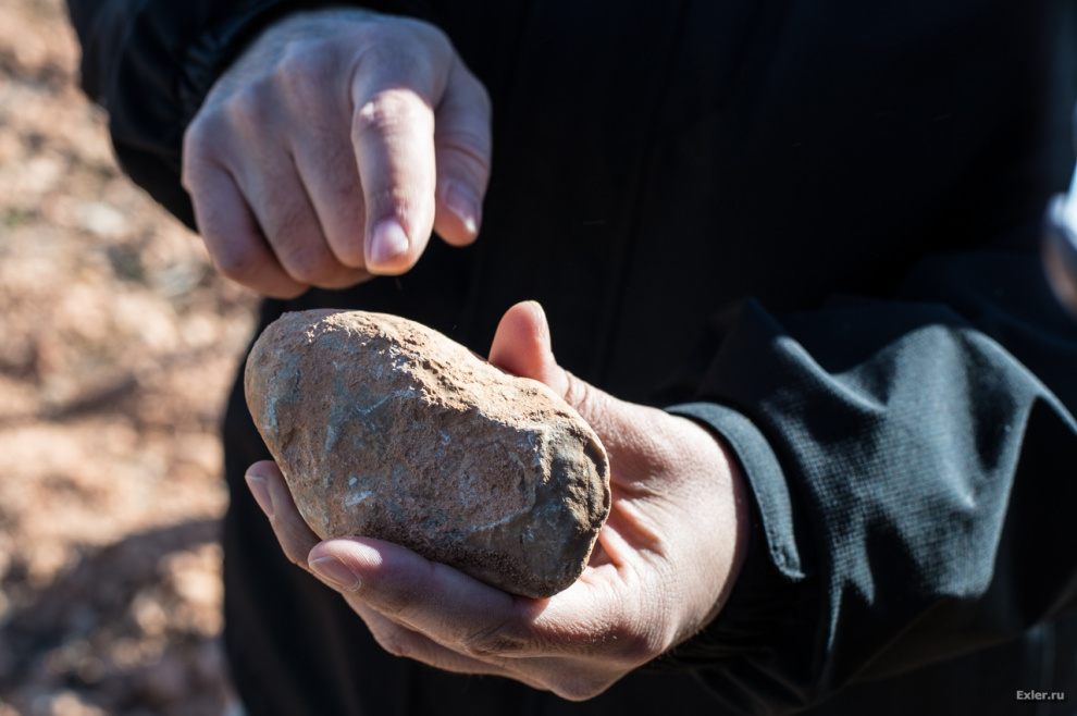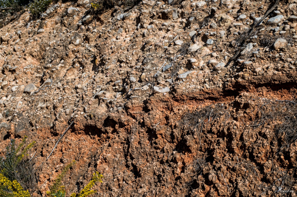 Вот обычный естественный срез почвы - тут хорошо видно, что сначала идет суглинистая почва, а потом она переходит в известняковую.