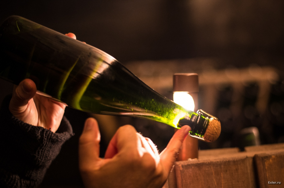 Перед снятием осадка (этот процесс называется дегоржаж) его нужно переместить к самому горлышку.