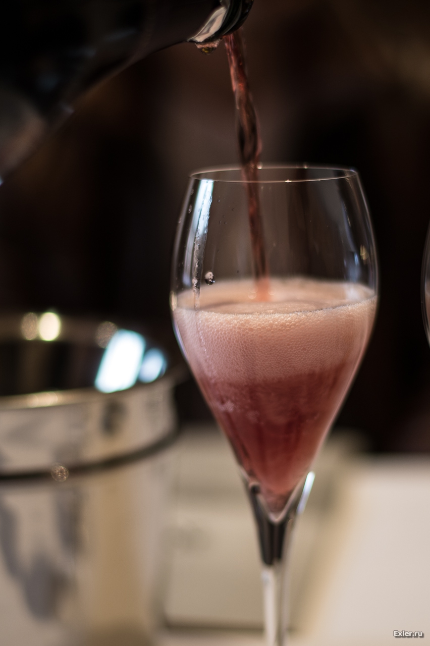 Вот тут как раз применяется выдерживание части базового вина (27%) в дубовых бочках. Мацерация (взаимодействие бродящего сусла с мезгой) производится в течение 6 часов - это дает вину очень красивый розово-клубничный оттенок.