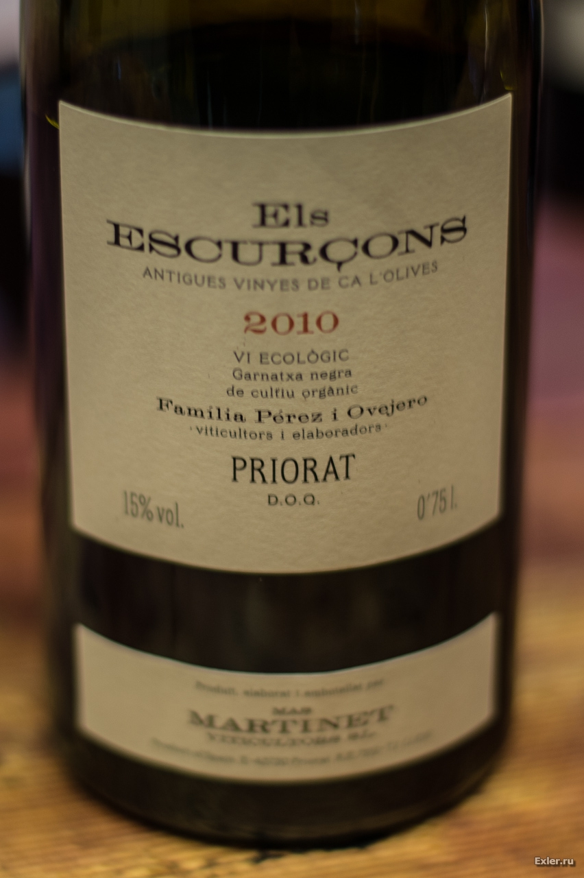 Els Escurcons 2010. Виноград: Гарнача Тинта и Сира. Мощный аромат фруктов, ягод и минералов. Во вкусе - фрукты и пряности. Ярко и очень насыщенно, но я люблю намного более умеренные вина.