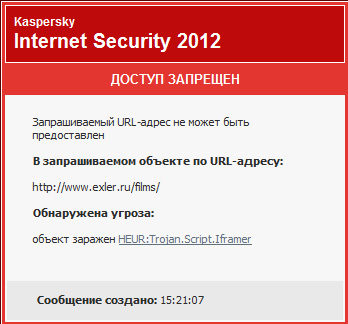 В разделе моих кинорецензий каким-то образом сегодня подсадили вирус - Касперский ругается у всех. Мы уже знаем, что за скрипт - сейчас вычистим, мои извинения. Потом будем выяснять, каким образом оно туда прорвалось.