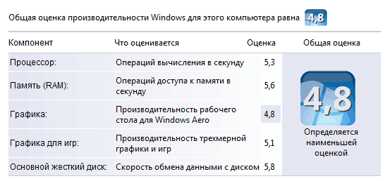 Хм, странно. У меня на более мощной конфигурации компьютера выдало общую оценку "3.9"