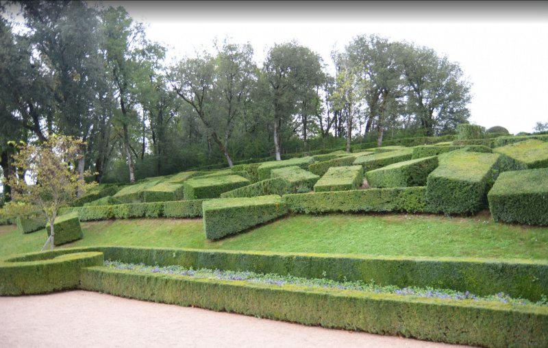 Изначально это был обычный французский парк, но в середине XIX века тогдашний владелец начал там высаживать самшит, липу, кипарис и пинию, после чего пригласил мастеров ландшафтного дизайна, которые из этого парка постепенно создали нечто выдающееся.