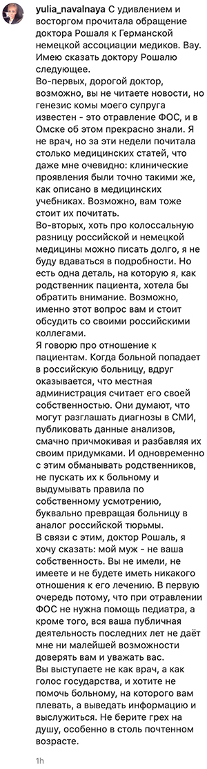 Upd: Ответ Юлии Навальной доктору Рошалю. Все в точку.