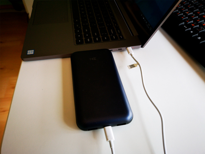Вот теперь-то я могу задействовать свой шикарный внешний аккумулятор Xiaomi ZMI 10 для зарядки ноутбука. Заряжает, ура! Сейчас ноут разряжу в ноль и проверю, за какое время зарядит целиком.