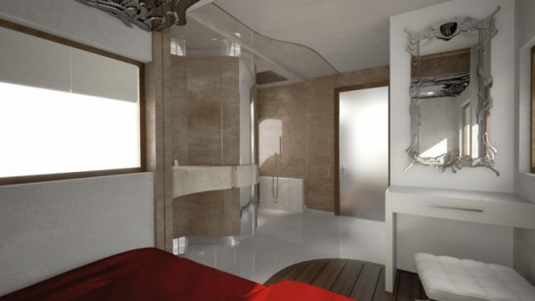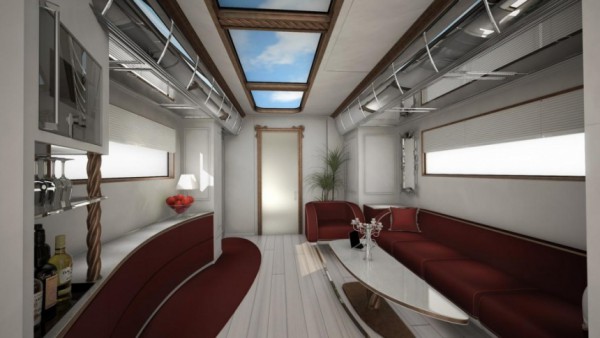 EleMMent Palazzo, созданный австрийской компанией Marchi Mobile, был представлен публике три года назад. Разумеется, это не самая быстрая машина в мире — она способна разогнаться максимум до 150 км/ч. Зато внутри скрывается настоящий двухэтажный дворец. На первом этаже расположены гостиная, кухня с барной стойкой, уборная и даже камин (крайне необходимая в Эмиратах вещь). На втором — огромная спальня с санузлом. (Отсюда.)
