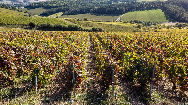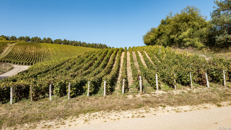 Несмотря на то, что урожай уже собран, и на винодельнях сейчас идет процесс винификации (ферментирование, брожение виноградного сусла), на фото видно, что на каких-то участках висят неубранные гроздья винограда. Почему их не убрали? Небольшая часть - это отбракованные в процессе сбора грозди: недостаточно зрелые, больные и так далее. Но большая часть - это просто невостребованный виноград, потому что в Шампани очень жестко (причем каждый год по-разному, в зависимости от многих факторов) регламентируется объем урожая, который можно использовать для производства шампанского, и если урожай получился больше, то часть винограда просто оставляют на лозах: его нет смысла собирать и пускать на что-то еще, это просто не окупится.