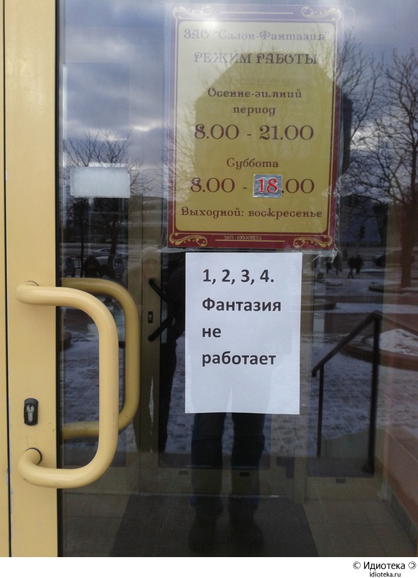 Ага, над рестораном вывеска "Мы открыты!", а на двери табличка "Закрыто" и чему верить?