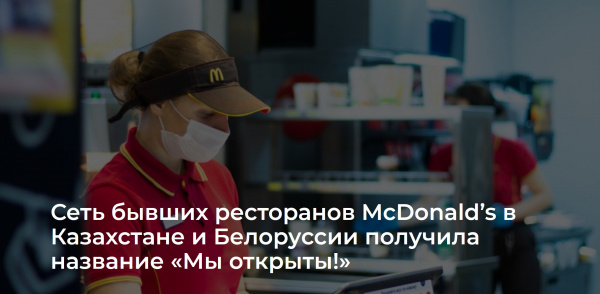 Рестораны ушедшей из России и других стран сети ресторанов быстрого питания получили в Белоруссии название «Мы открыты!». Также стали именоваться рестораны сети в Казахстане, пишет «Союзное вече».