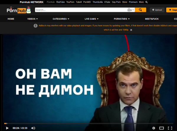 На Pornhub разместили ролик "Он вам не Димон" (но только предупреждаю, что при переходе могут быть показаны соответствующие порнхабные баннеры с рисованной порнухой), который нынче типа как запретил типа как суд. Ну что сказать - молодцы, ребята! Это реально крутое порно, которое все должны посмотреть, раз такое дело!