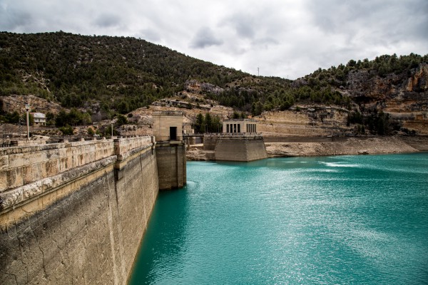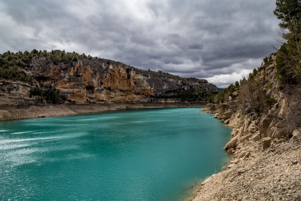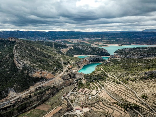 Обычно фото этого водохранилища делают со стороны замка Кастельоте и выкладывают. Этих фотографий в Интернете - десятки. Я сделал фото с другой точки с высоты 350 метров. Тут и вид на своеобразную скалу с наплывом, и на дамбу, и на водохранилище.