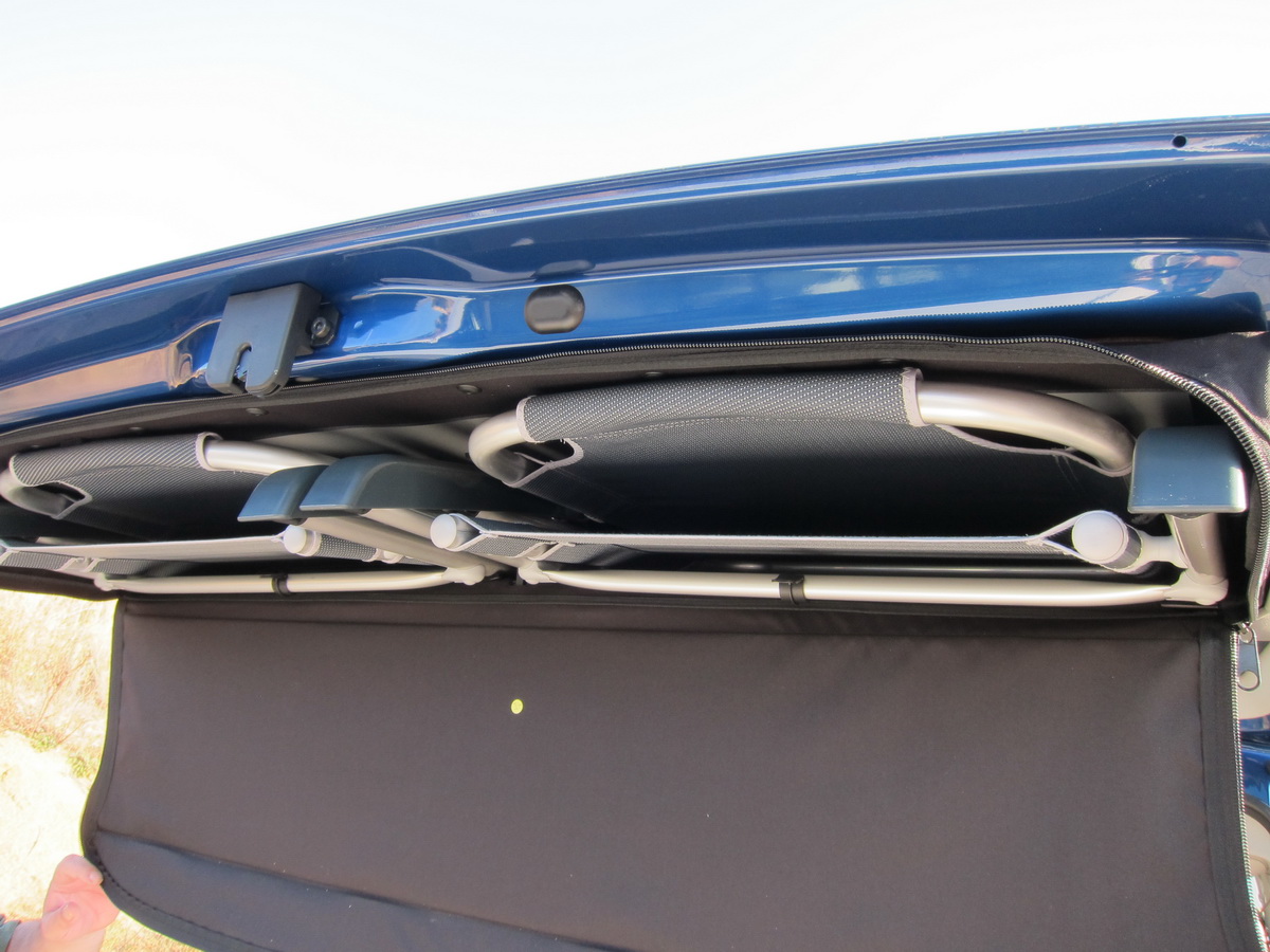 Это, впрочем, не фокус. А фокус заключается в том, что достаточно нажать одну кнопочку - и у машины крыша превращается в палатку.