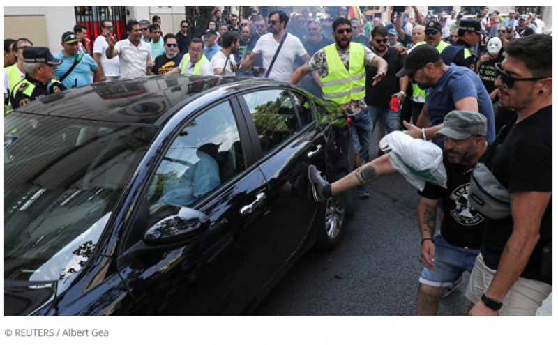 Муниципалитет Барселоны вроде бы ввел какие-то квоты на выдачу этих лицензий ( на 30 таксистских лицензий 1 лицензия VTC), но в Барселоне и других городах началась забастовка таксистов, столкновения их с полицией, а также были два совершенно вопиющих случая нападения таксистов на машины Uber и Cabify. Об одном таком случае пишут в El Periódico, там есть видео (таксисты набросились на машину, в которой сидели туристы из Франции с маленькими детьми: надеюсь, этих уродов разыщут и накажут).