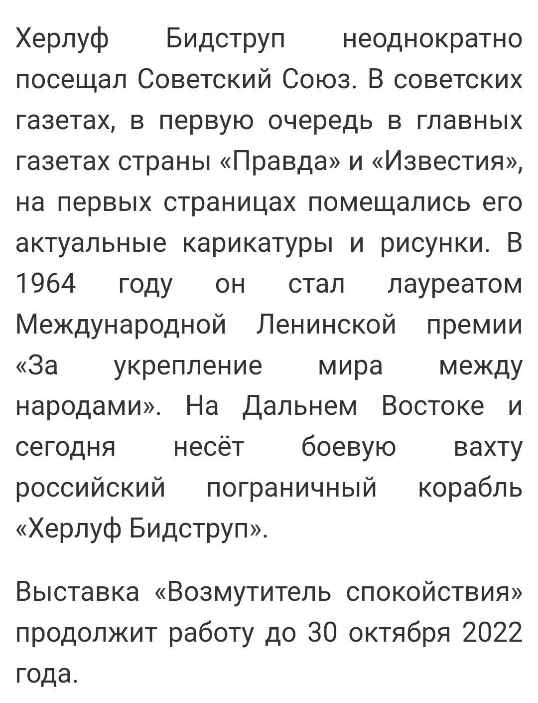 Бидструп - коммунист от мозга до костей, на минуточку. И да, у него действительно есть замечательные карикатуры, критикующие Запад. А вот СССР у него критике не подлежал.