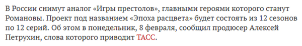 Если вы читали статью, речь идёт о становлении дома Романовых. Так что я накидал синопсис первого сезона: